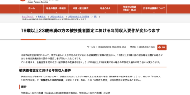 19歳以上23歳未満の健康保険被扶養者認定年間収入要件の変更について