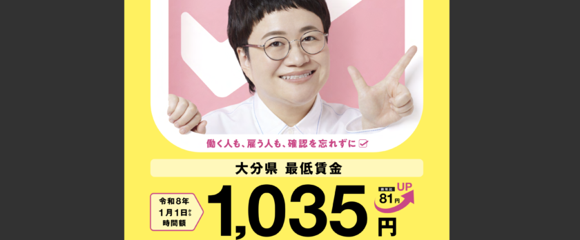 令和8年1月1日から大分県の最低賃金(時間額)は1,035円に改正されます。