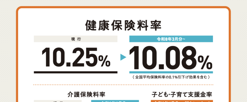 令和8年3月分(4月納付分)から協会けんぽの健康保険料率及び介護保険料率が改定されます。